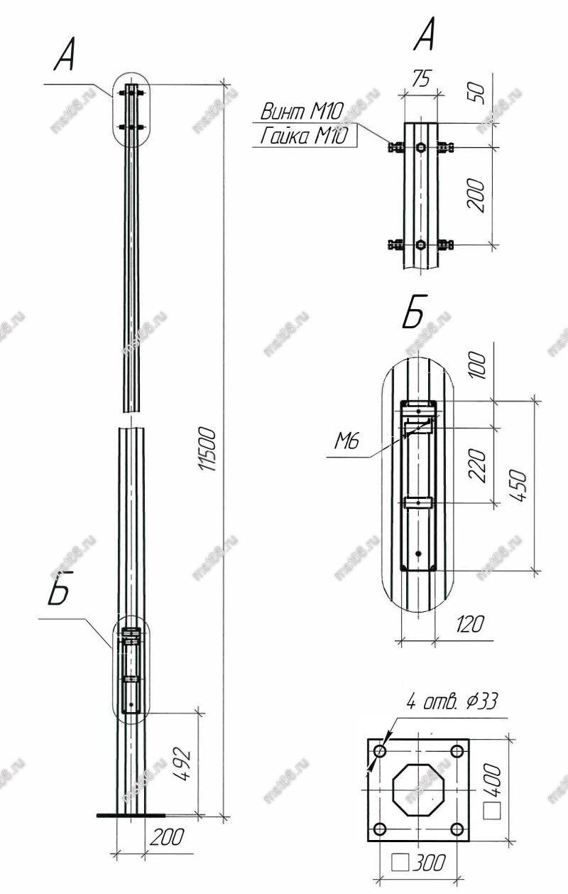 Опора НФГ-6,0-02 несиловая фланцевая граненая, используется для организации уличного освещения. Могут устанавливаться консольные кронштейны с разным количеством рожков. В комплекте опор НФГ-6 используются различные уличные светильники. Установка происходит за счет соединения фланца с закладными металлическими фундаментами.
