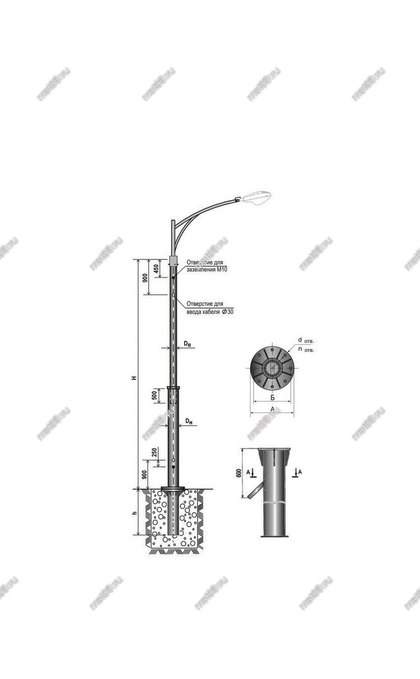 Опора освещения СФ-300-8,5-01-ц силовая фланцевая трубчатая является универсальной конструкцией, так как позволяет осуществлять как подземный подвод кабельной системы, так и прокладку СИП.